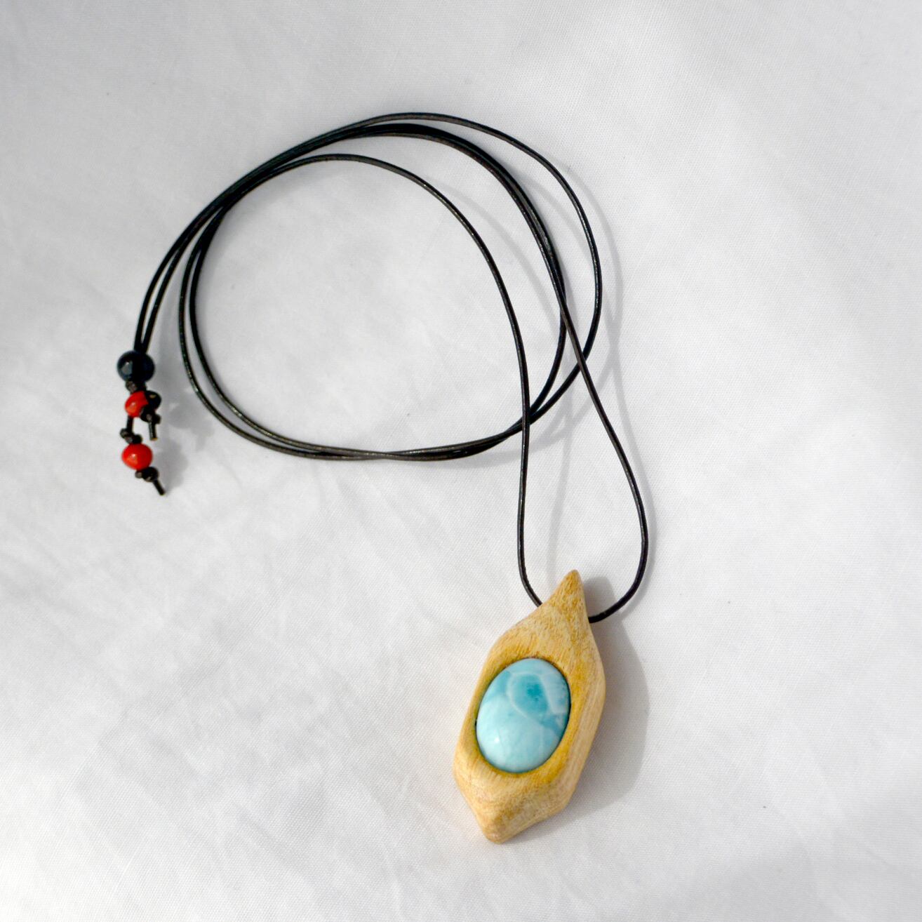 スペイン語で「聖なる木」と呼ばれるパロサントと、存在感のあるラリマーそしてワイルーロの実を組み合わせた、美しいネックレスの登場です。