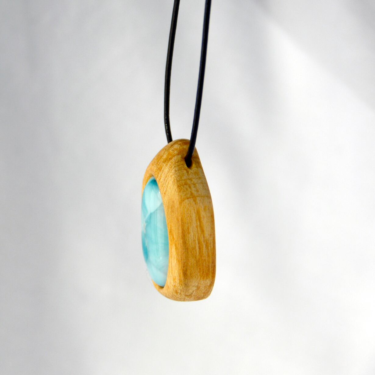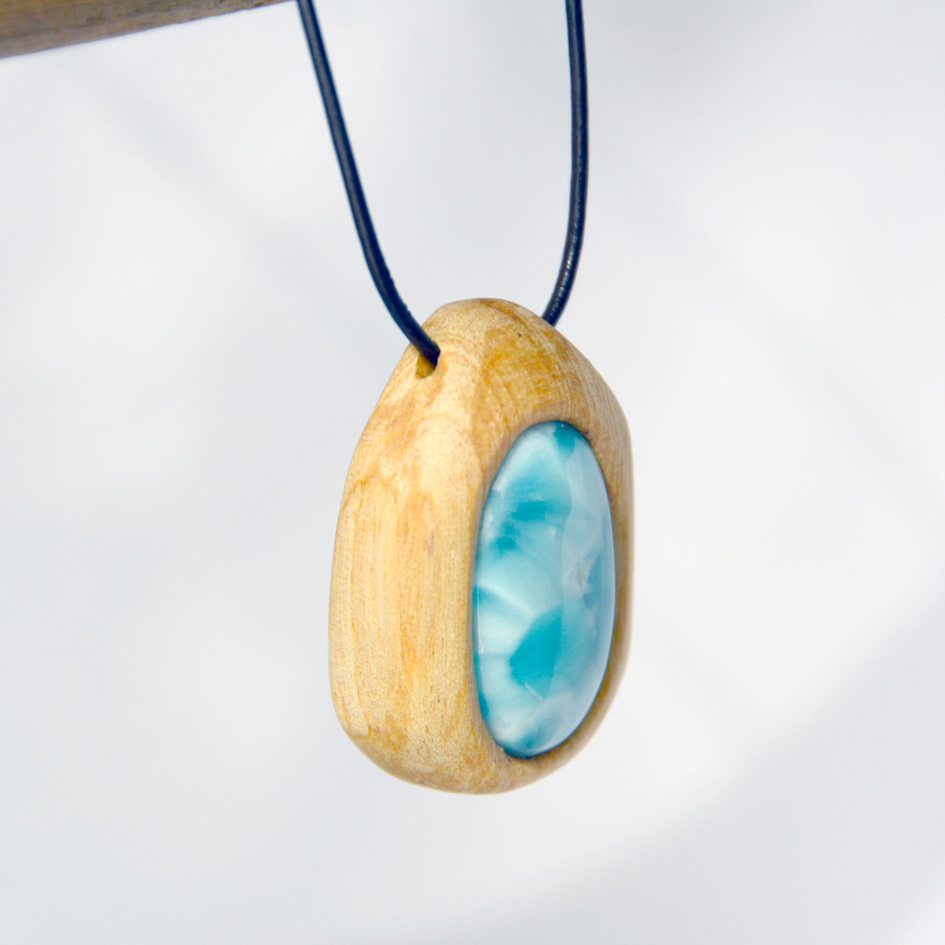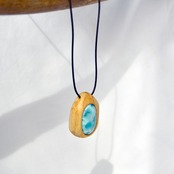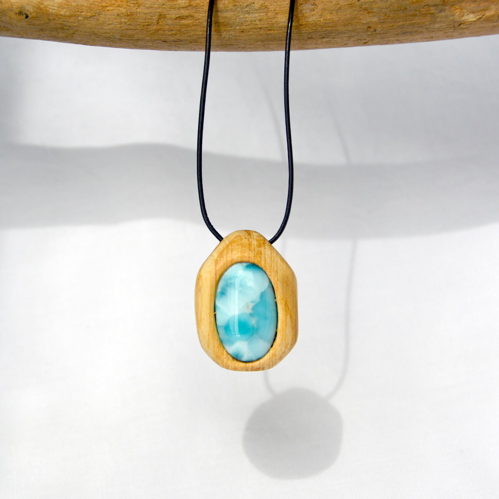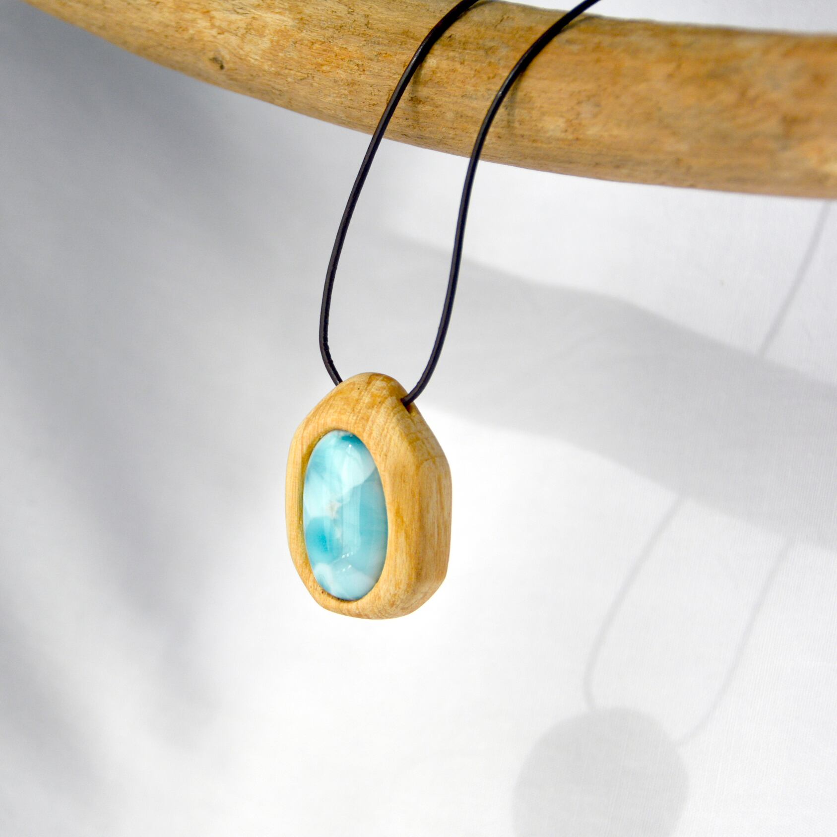 透明感のある美しい水色のラリマーは、まるで海のような色合いを持ち、パロサントの温かみと見事に調和しています。