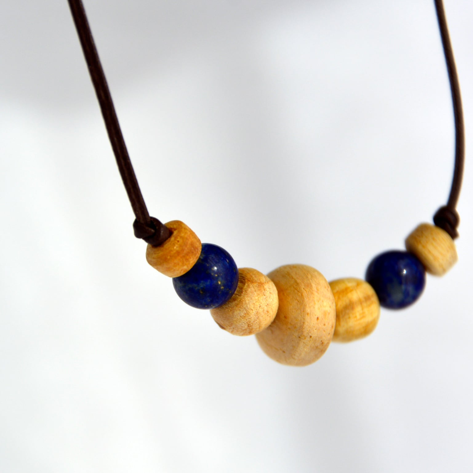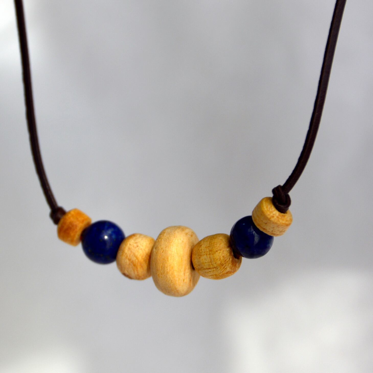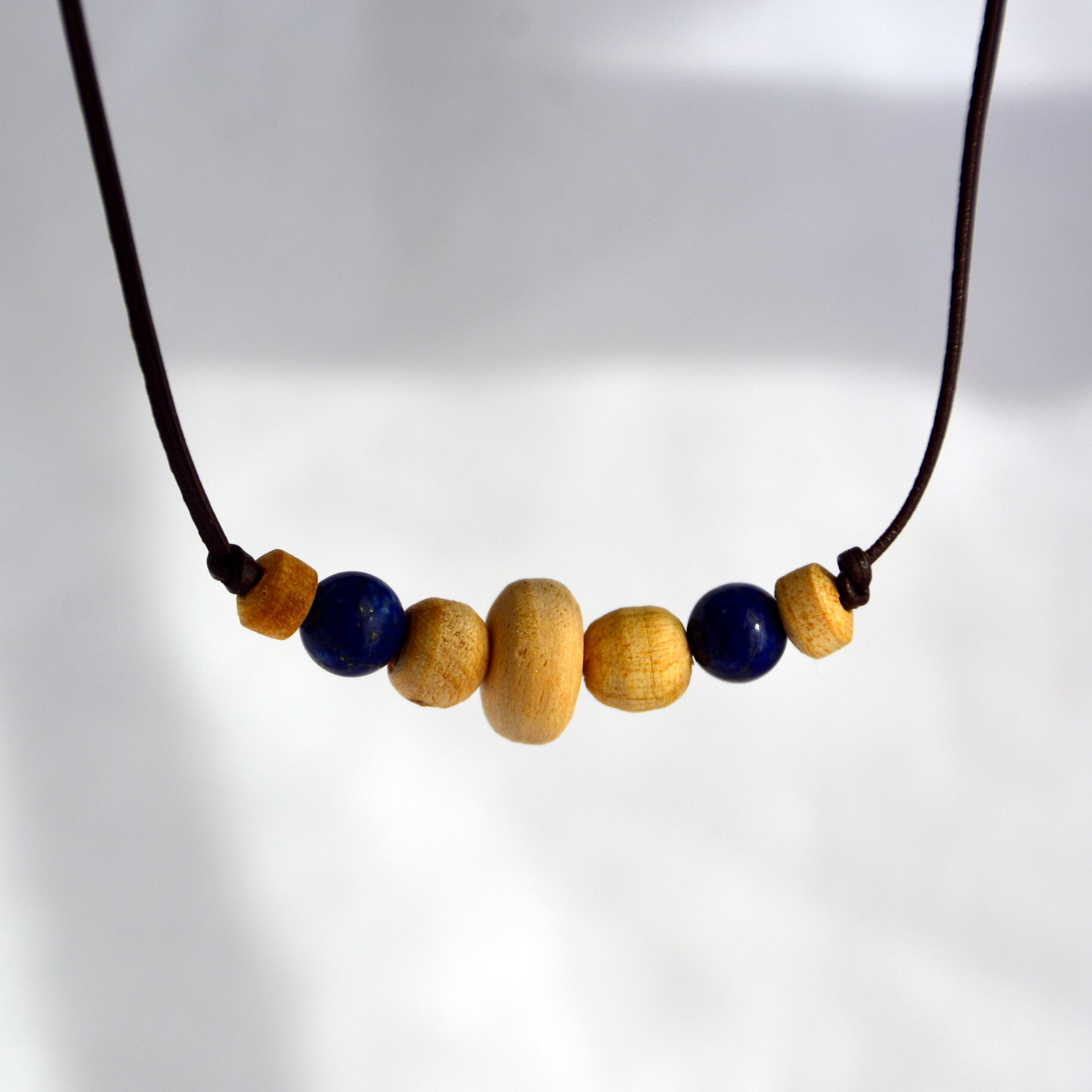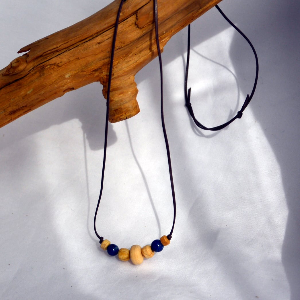 スペイン語で「聖なる木」と称されるパロサントに、ラピスラズリのビーズを組み合わせた素敵なネックレスの登場です。